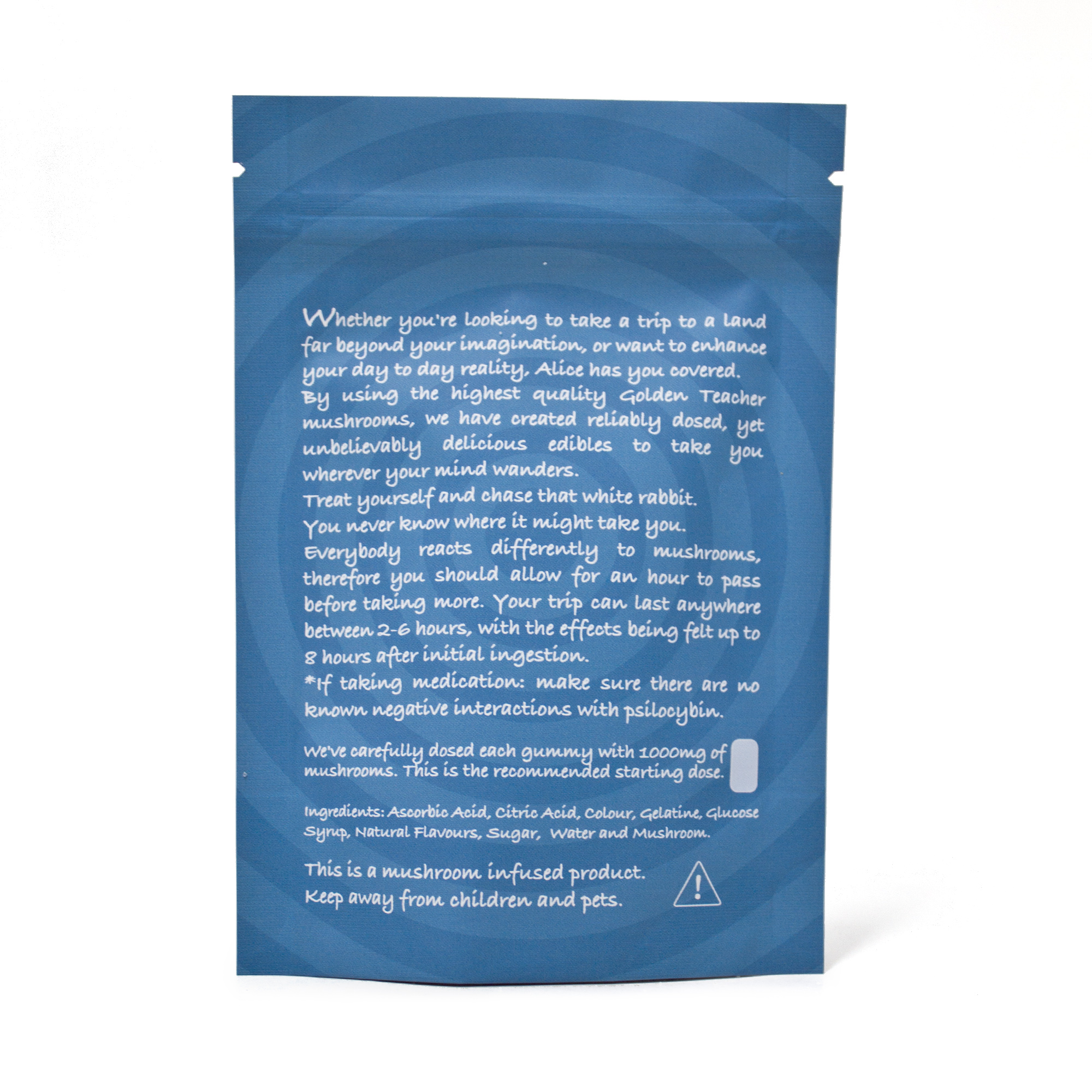Whether you’re looking to take a trip to a land far beyond your imagination, or want to enhance your day to day reality, Alice has you covered. By using the highest quality Psilocybin Mushrooms, we have created reliably dosed, yet unbelievably delicious edibles to take you wherever your mind wanders.