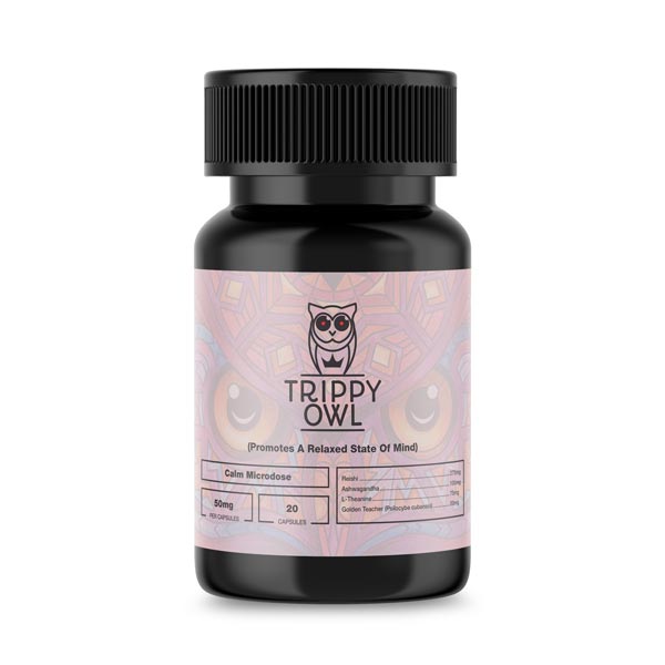 Trippy Owl’s Calm Microdose comes in a convenient 20-capsule pack, offering a discreet and precise way to incorporate relaxation into your daily routine. Embrace the tranquility within, and let Trippy Owl guide you to a peaceful state of mind.