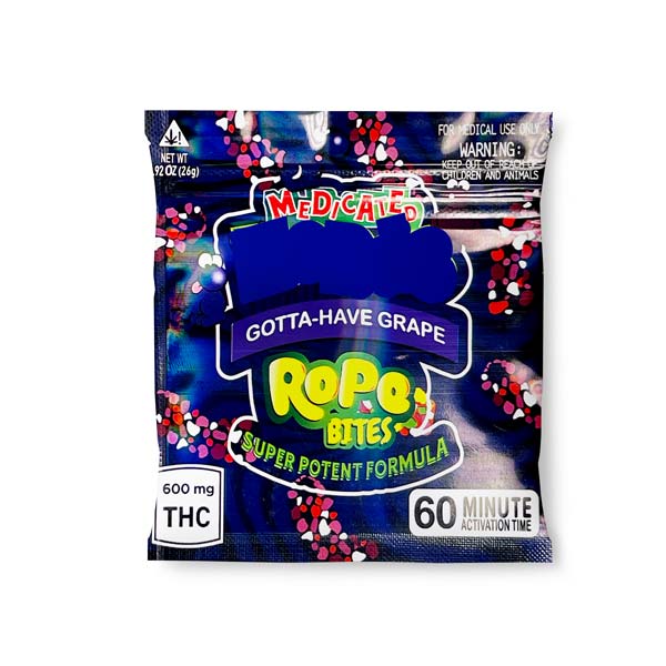 These medical Rope Bites are infused with 600 mg of active THC, making this one mighty awesome candy edible that only takes 60 minutes to fully kick in!