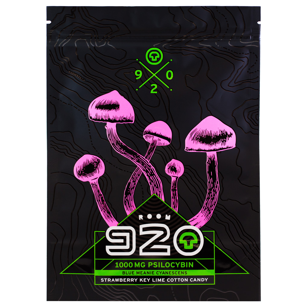 Take a trip with the latest from Room 920, Strawberry Key Lime Cotton Candy! A precisely dosed bag of a classic candy infused with Blue Meanie mushroom extract.
