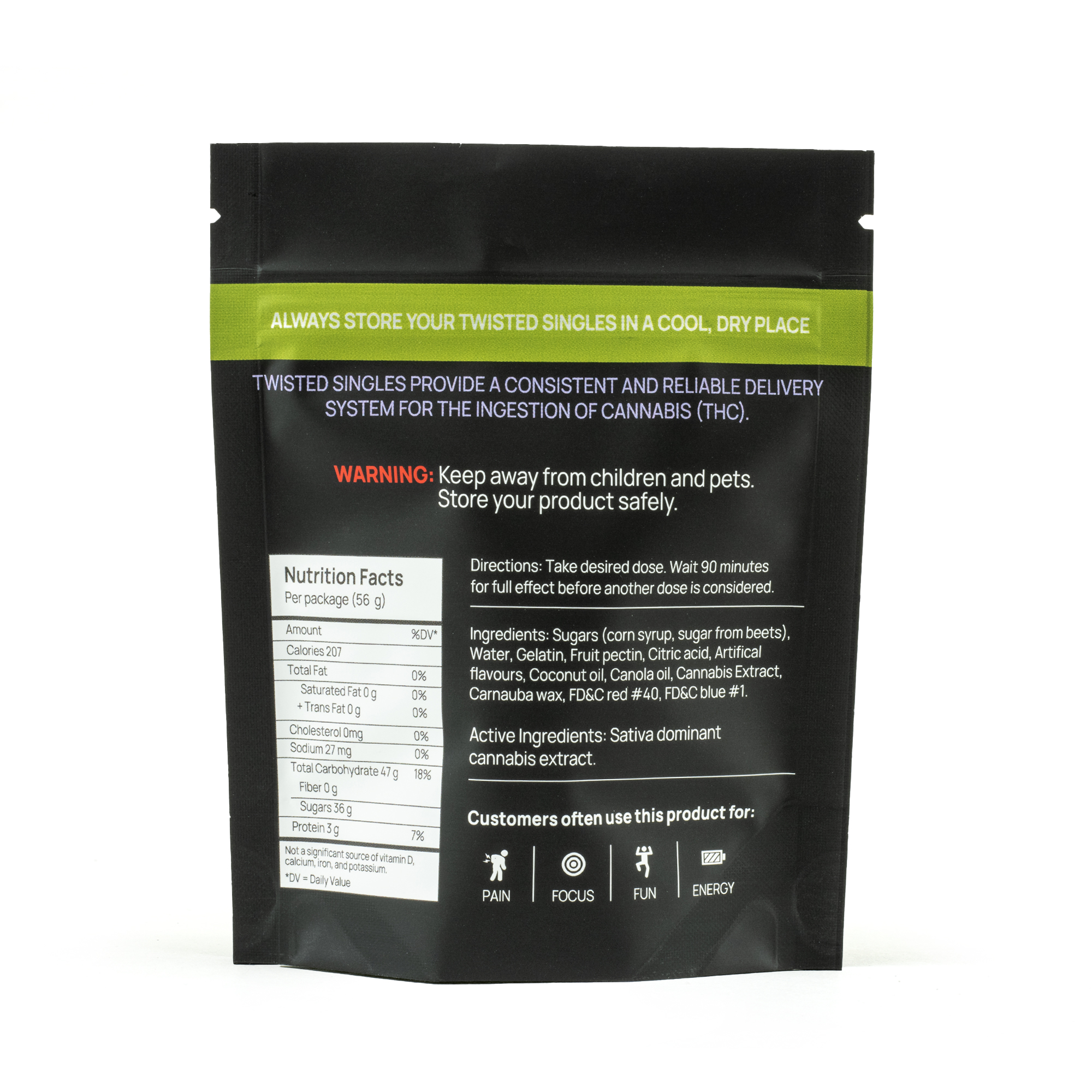 Twisted Extracts Sour Strawberry Kiwi Twisted Singles – Sativa (160mg THC)